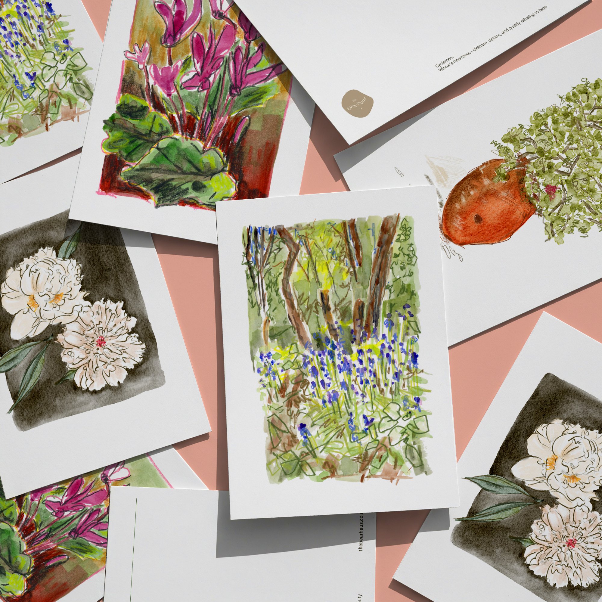 A set of four A6 note cards featuring original hand-drawn illustrations inspired by the natural world. A quiet space for words for those who appreciate simplicity, texture, and the art of the handwritten note.
